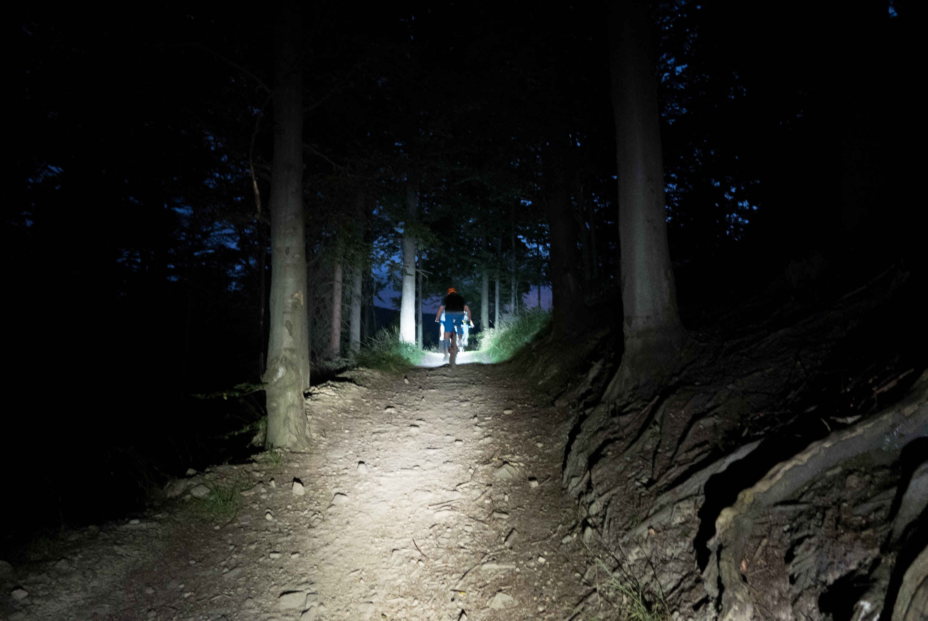 Niestety, pod koniec trasy na sekcji korzeni zbyt słabo zamocowany przeze mnie pasek montażowy spowodował obrócenie się źródła światła w moją stronę, totalne oślepienie oraz wypadnięcie z trasy. Stąd moja dobra rada: zawsze dociągajcie mocno pasek, bo inaczej może się obrócić nawet w mieście, np. na krawężniku.