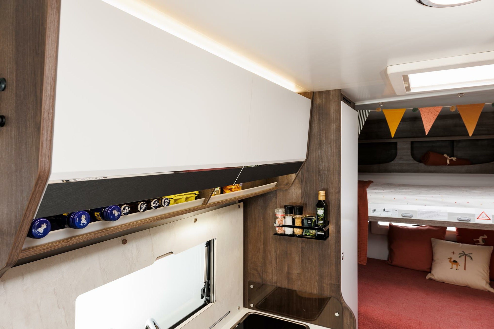 ➢ Nowa półka w kabinie z funkcją stopni ułatwiających wejście na łóżko
