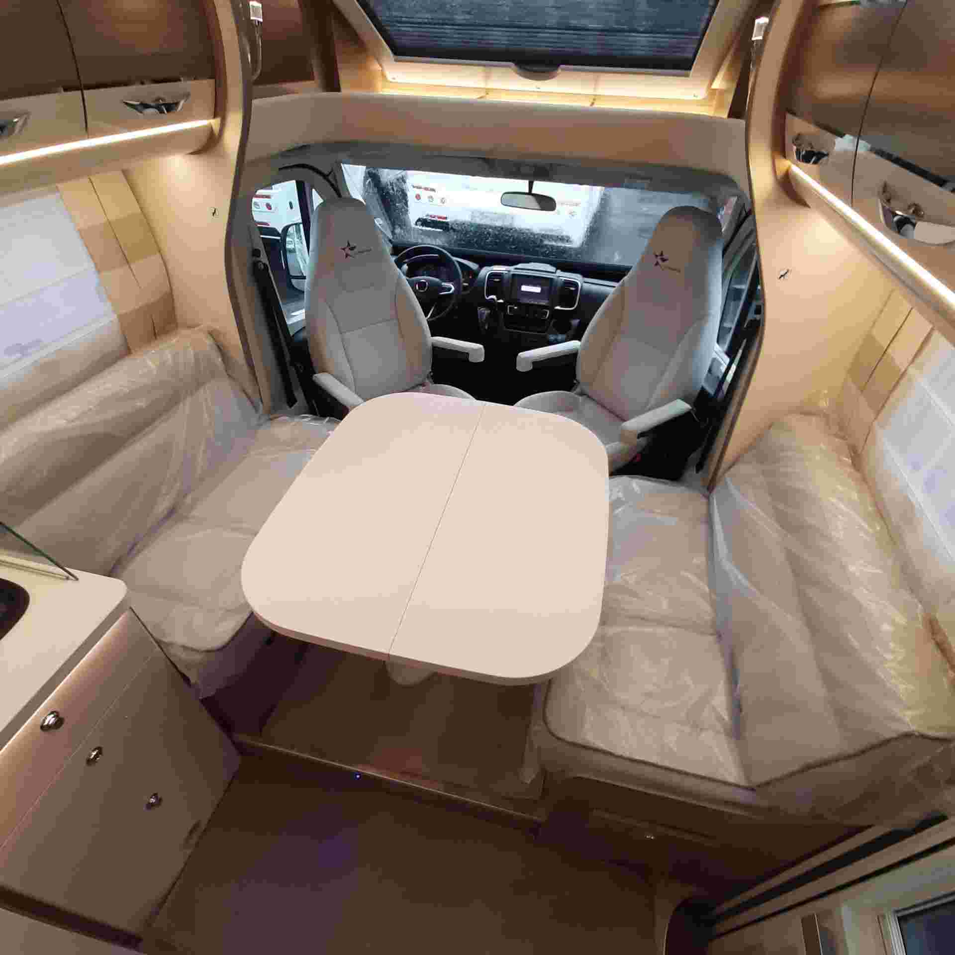 - Salonka XL - fotele dla pasażerów w zabudowie wysuwane z sof (2 niezależne, z regulowanym oparciem) + system ISOFIX. Sofy typu "Face to Face".